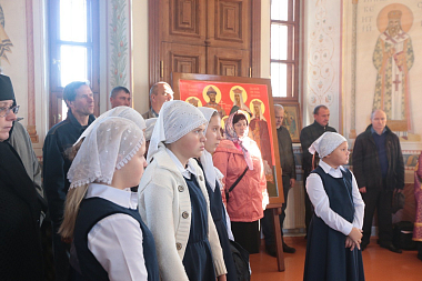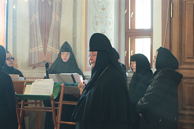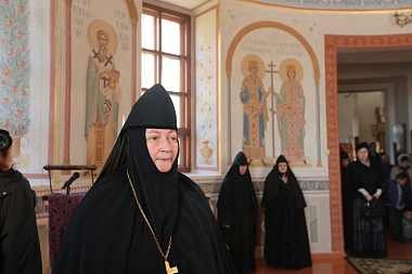 Затем владыка Феогност от имени Святейшего Патриарха Московского и вся Руси Кирилла поздравил настоятельницу монастыря игумению Марию (Солодовникову) и сестер с днем основания обители, пожелав, чтобы их труды всегда были во славу Божию.