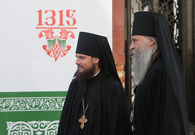 Перед началом богослужения по благословению Святейшего Патриарха Кирилла в монастырь доставили ковчег с частицами мощей равноапостольных великого князя Владимира и великой княгини Ольги. Ковчег будет пребывать в Сергиевском храме монастыря на протяжении всех дней празднования престольного торжества.