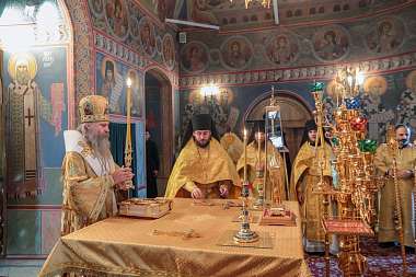 После Всенощного бдения в Сергиевском храме перед чтимой монастырской иконой святителя Петра с частицей его мощей был прочитан акафист.