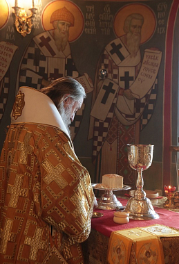 Позднюю Божественную литургию по благословению Святейшего Патриарха Московского и всея Руси Кирилла возглавил Председатель Синодального отдела по монастырям и монашеству, наместник Троице-Сергиевой лавры архиепископ Сергиево-Посадский Феогност.