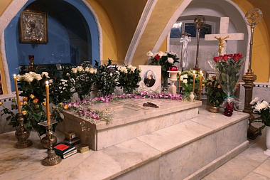 Верим: у Бога нет мертвых – у Бога все живы; верим, что там, в другом пространстве, другом измерении он вместе с Новомучениками и исповедниками Церкви Русской. и молится за нас, и радуется за нас, и огорчается, когда мы что-то делаем не так.