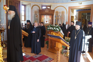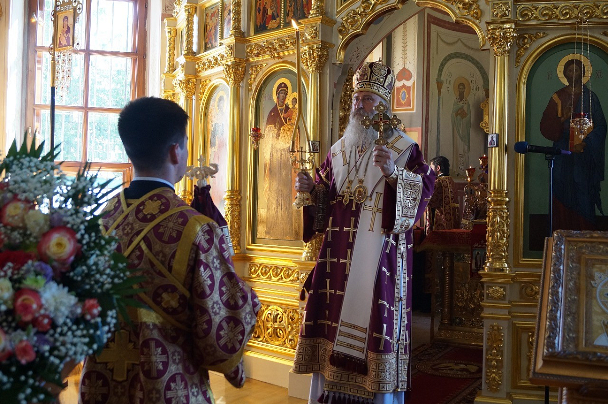 Затем архиепископ Феогност обратился к собравшимся с назидательным архипастырским словом и передал благословение и поздравление с престольным праздником от Святейшего Патриарха Московского и всея Руси Кирилла.