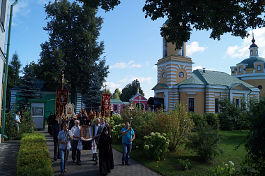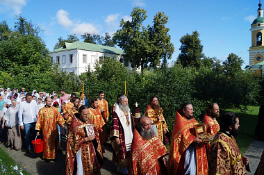 По заамвонной молитве владыка Феогност возглавил праздничный крестный ход, во время которого окропил всех богомольцев святой водой.