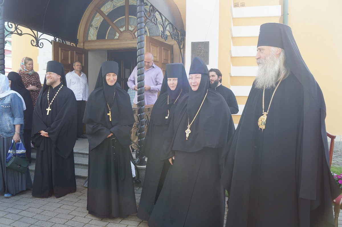 В ответном слове настоятельница монастыря игумения Мария (Солодовникова) выразила благодарность владыке Феогносту за поздравления, совершенное праздничное богослужение, вознесенные молитвы и преподнесла в дар Его Высокопреосвященству икону Божией Матери «Одигитрия» Смоленская.