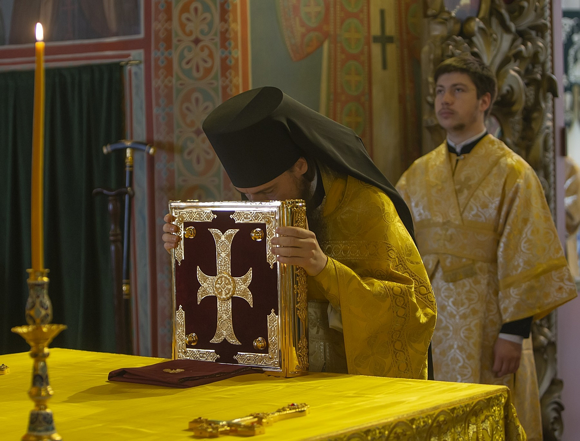 Проповедь по запричастном стихе произнес архимандрит Дорофей (Вечканов).