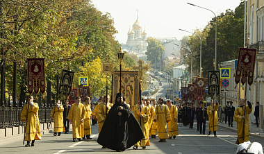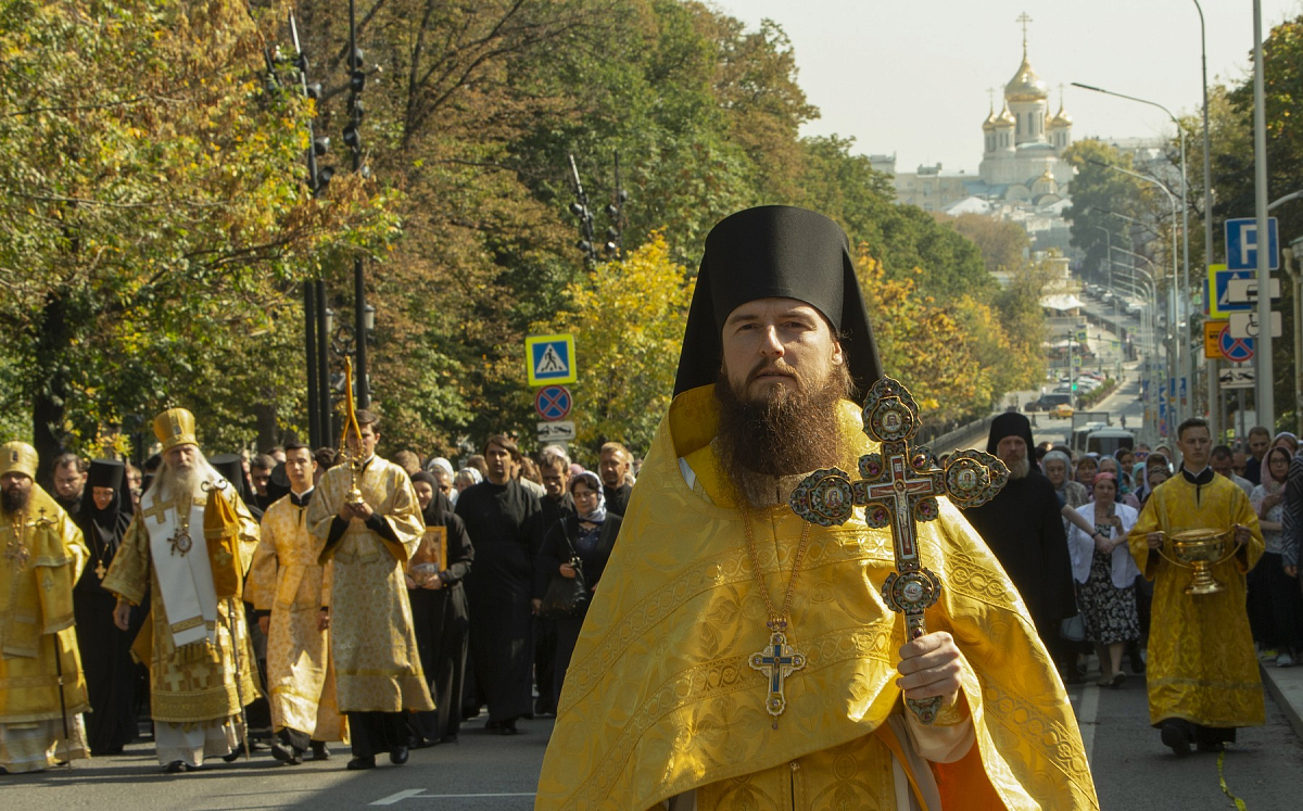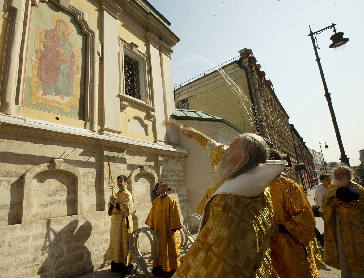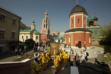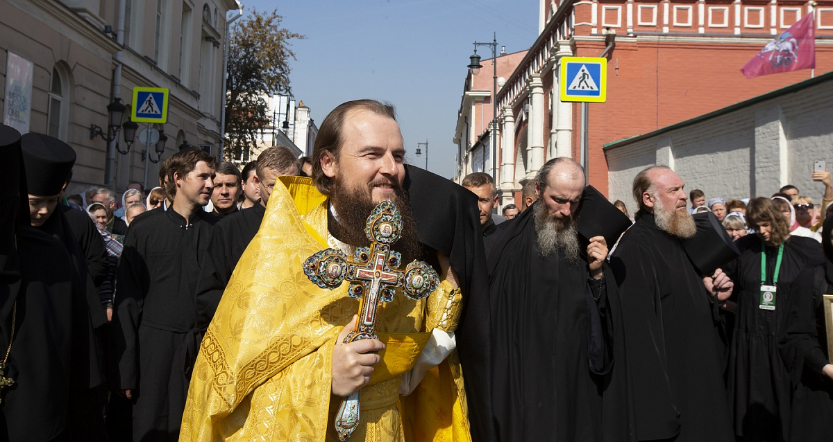 По окончании Литургии вокруг монастыря прошел традиционный Петровский крестный ход с чтимой иконой святителя Петра и другими святынями обители. Во время крестного хода архиепископ Каширский Феогност освятил образ Толгской иконы Божией Матери, написанный на фасаде Толгского храма.