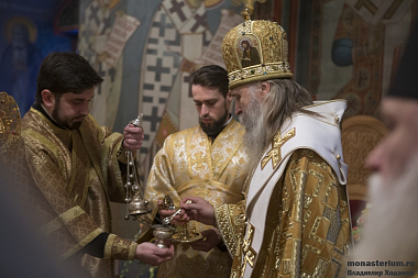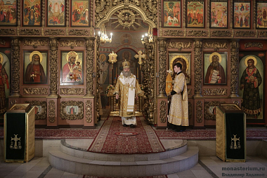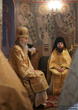 Затем праздничное богослужение в Сергиевском храме монастыря возглавил председатель Синодального отдела по монастырям и монашеству, наместник Троице-Сергиевой лавры архиепископ Сергиево-Посадский Феогност.