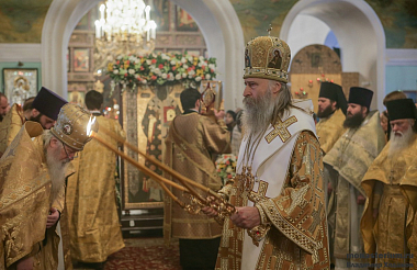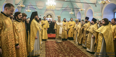 Накануне в Сергиевском храме обители было совершено всенощное бдение с акафистом святителю Петру.