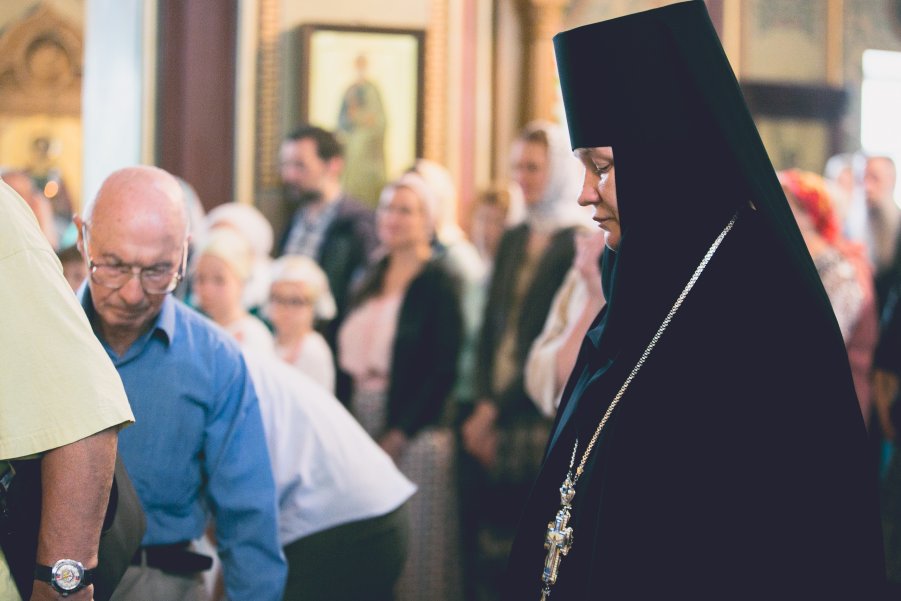 После целования Креста архиепископ Феогност в сопровождении клириков, братии, насельников и трудников подворья совершил чин о Панагии.