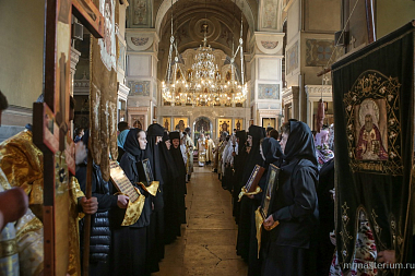 В этот праздничный день богослужение в храме Всех святых Алексеевской обители возглавил председатель синодального отдела по монастырям и монашеству, наместник Свято-Троицкой Сергиевой лавры архиепископ Сергиево-Посадский Феогност.