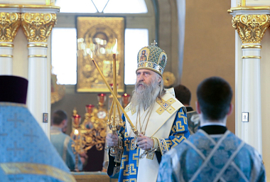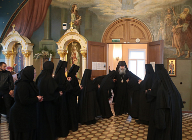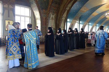 Его Высокопреосвященству сослужили заместитель председателя Синодального отдела по монастырям и монашеству архимандрит Стефан (Тараканов) и духовенство обители.