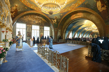 В этот день Божественную литургию в обители совершил председатель Синодального отдела по монастырям и монашеству архиепископ Сергиево-Посадский Феогност.