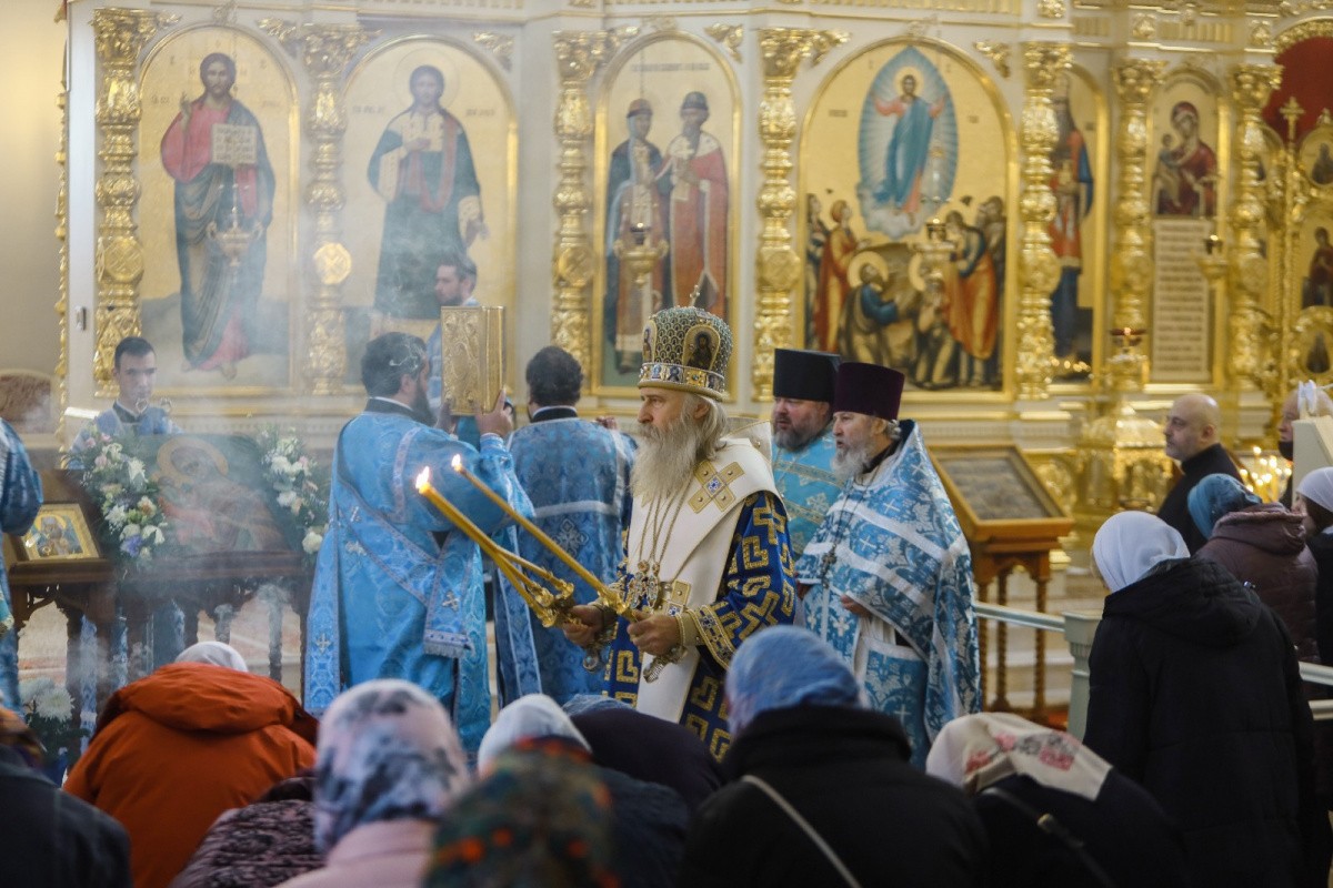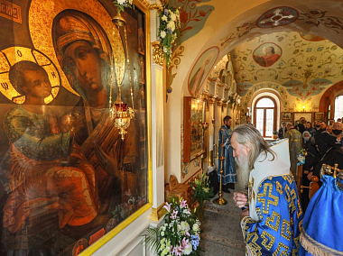 По окончании богослужения был совершен крестный ход в монастырский Иерусалимский храм, где владыка Феогност отслужил молебен перед чтимой иконой Божией Матери Иерусалимской.
