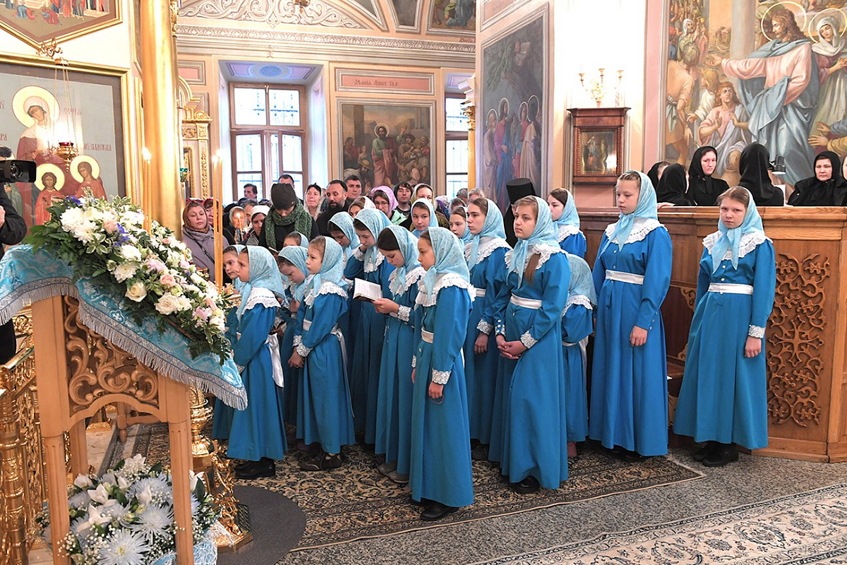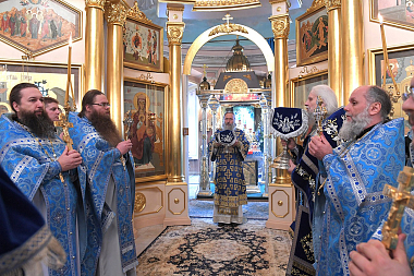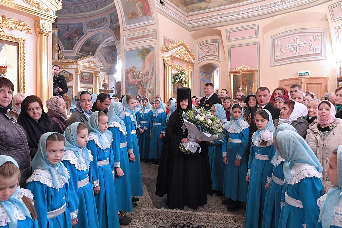 За богослужением молились: настоятельница Покровского женского монастыря игумения Феофания (Мискина) с сестрами; воспитанницы приюта Покровской обители, а также многочисленные паломники.
