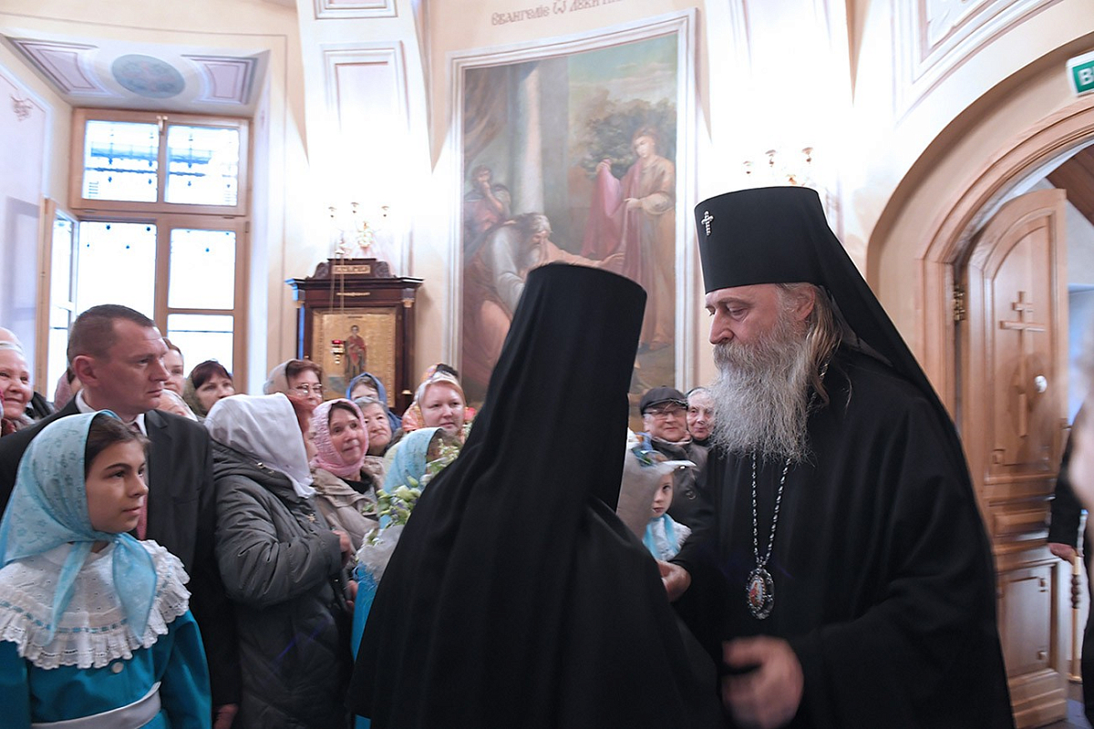 Благословите сердечно приветствовать Вас в стенах древней Покровской обители и от лица всех присутствовавших на богослужении, которое Вы в этот светлый день возглавили, поздравить Вас с нашим престольным праздником – Покровом Пресвятой Владычицы нашей Богородицы и Приснодевы Марии!