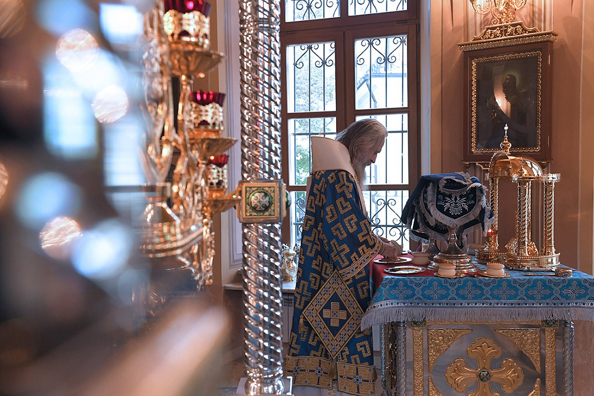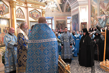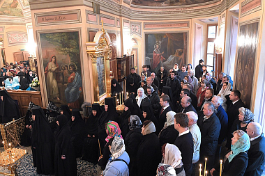 Его Высокопреосвященству сослужили: заместитель председателя Синодального отдела по монастырям и монашеству архимандрит Стефан (Тараканов); протопресвитер Владимир Диваков, секретарь Патриарха Московского и всея Руси по г. Москве, и клирики обители.