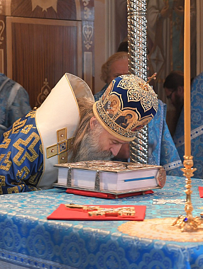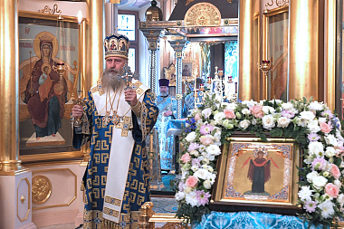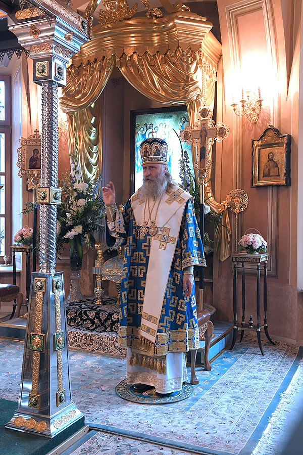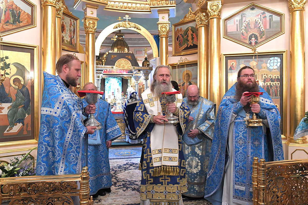 Мы сердечно благодарны нашему Первосвятителю Святейшему Патриарху Московскому и всея Руси Кириллу и за то, что он благословил Вам, дорогой Владыка, совершить сегодня Божественную литургию и этим приумножить нашу радость в день сегодняшнего сугубого торжества – в наш престольный праздник!