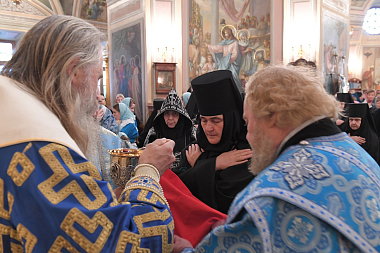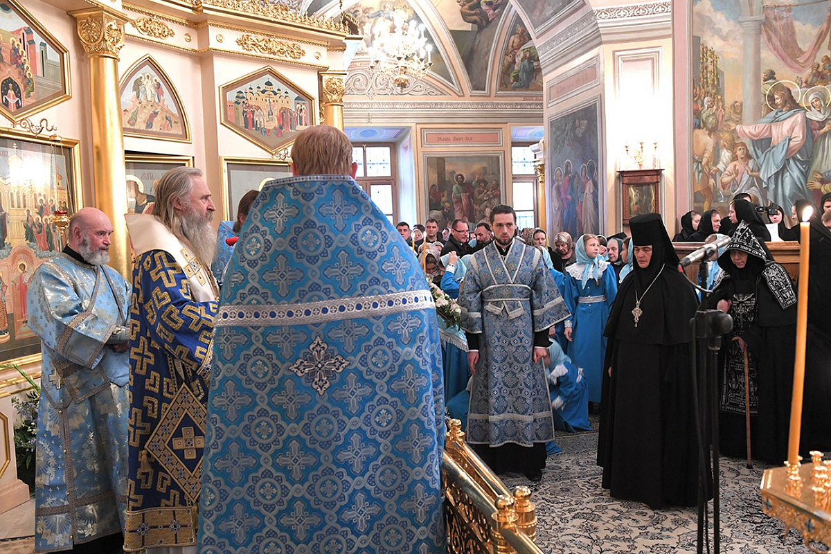 В этот день по благословению Святейшего Патриарха Московского и всея Руси Кирилла праздничную Божественную литургию в Покровском храме обители совершил председатель Синодального отдела по монастырям и монашеству, наместник Троице-Сергиевой лавры архиепископ Сергиево-Посадский Феогност.