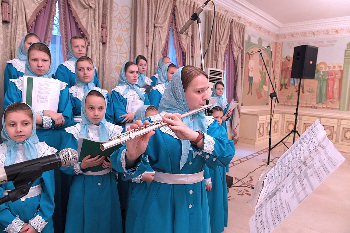 Торжество завершилось праздничной трапезой, во время которой воспитанницы монастырского приюта представили концерт, посвященный престольному празднику Покровской обители. В честь праздника Высокопреосвященнейший владыка Феогност передал в дар игумении Феофании вазу с выгравированной панорамой Троице-Сергиевой лавры.