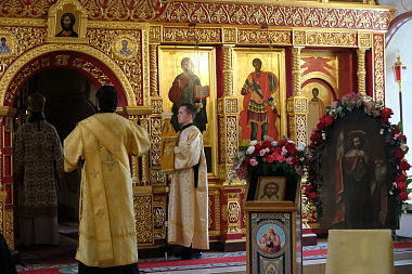 По окончании Литургии был совершен крестный ход, завершившийся молитвой перед образом святого благоверного князя Александра.