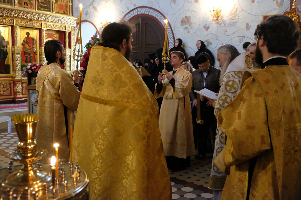 Накануне в обители было отслужено праздничное всенощное бдение с чтением на утрене акафиста празднуемому святому. Перед началом богослужения на внешней стороне центрального алтаря храма было установлено мозаичное изображение святого благоверного князя Александра Невского.