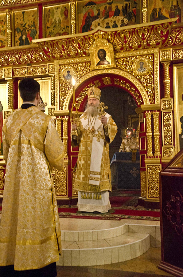 По окончании Литургии владыка Феогност обратился к собравшимся с архипастырским словом, посвященным главным духовным качествам св. Александра Невского – кротости и смирению.