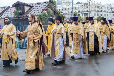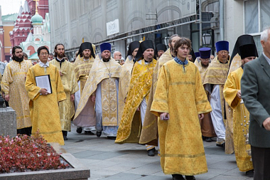 По завершении Божественной литургии состоялся крестный ход вокруг территории обители. Торжественная процессия проследовала от врат монастыря к месту бывшего Никольского собора Николо-Греческого монастыря, затем к Иверской часовни на Красной площади и Казанскому собору и обратно к Спасскому собору.