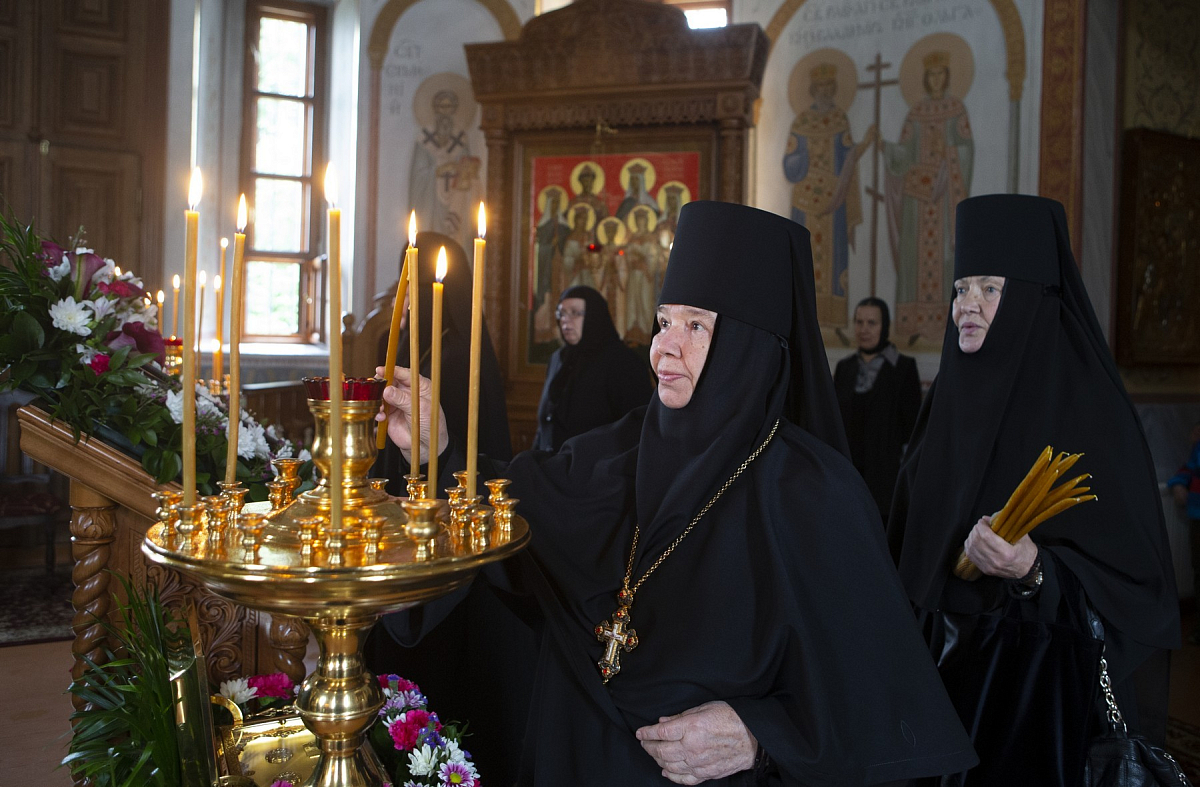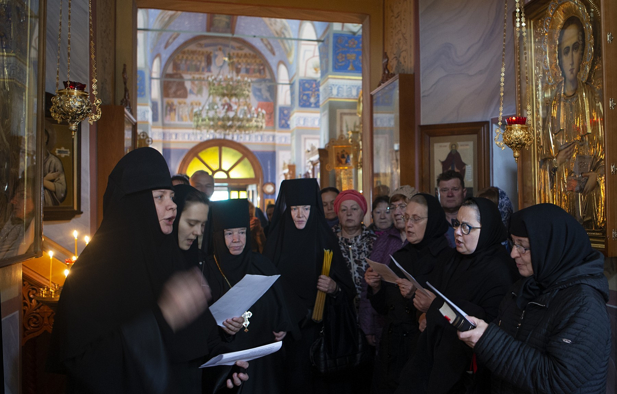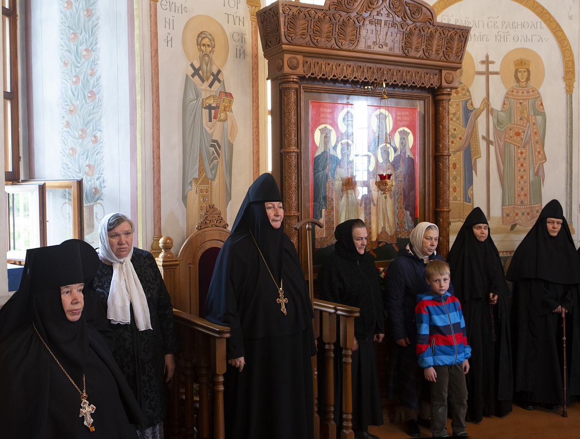 Накануне вечером собором монастырского духовенства в приделе святых благоверных князей и страстротерпцев Бориса и Глеба было отслужено торжественное всенощное бдение с литией и пением акафиста небесным покровителям обители.