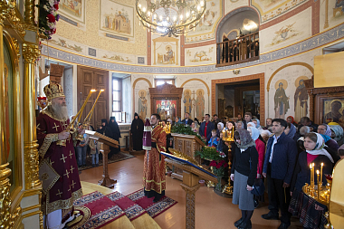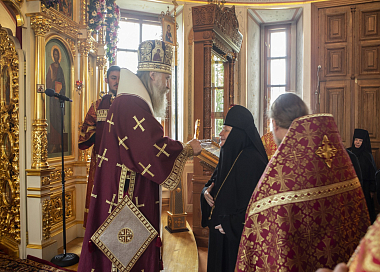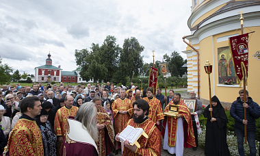 В завершение богослужения Его Высокопреосвященство от имени Святейшего Патриарха Московского и всея Руси Кирилла поздравил молящихся с престольным праздником обители, передал благословение Его Святейшества и обратился к собравшимся с назидательным архипастырским словом.