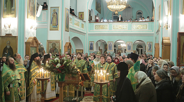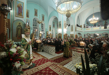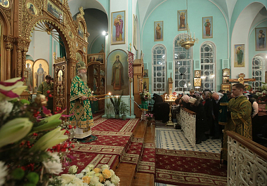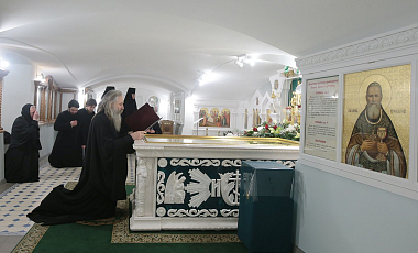 Накануне вечером было совершено всенощное бдение с акафистом святому праведному Иоанну Кронштадтскому. Богослужение завершилось торжественным сходом в усыпальницу, где было пропето величание святому.