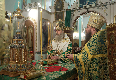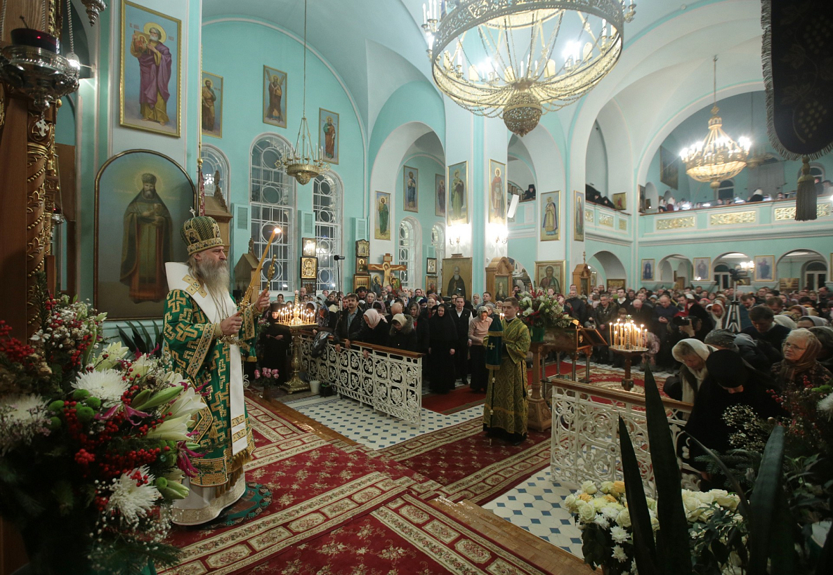 По окончании богослужения владыка Феогност вознес молитву святому праведному Иоанну Кронштадтскому и обратился к собравшимся с архипастырским словом:
