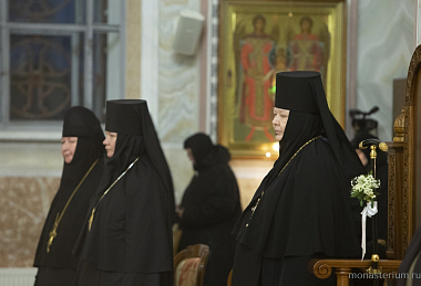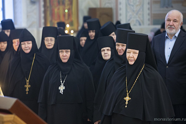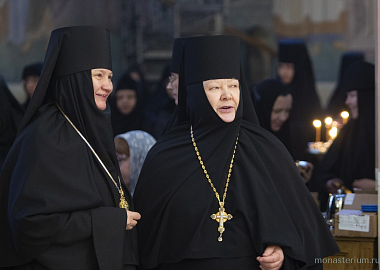Поздравить игумению Олимпиаду и помолиться за праздничным богослужением прибыли заместитель председателя Синодального отдела по монастырям и монашеству, настоятельница Зачатьевского ставропигиального женского монастыря игумения Иулиания (Каледа) с сестрами, настоятельница Кресто-Воздвиженского Иерусалимского ставропигиального женского монастыря игумения Екатерина (Чайникова) с сестрами, настоятельница Борисоглебского Аносина ставропигиального женского монастыря игумения Мария (Солодовникова) с сестрами.