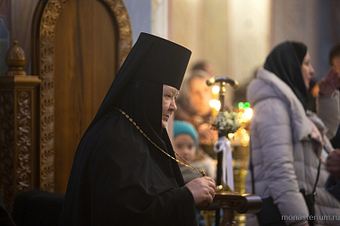 По окончании Литургии архиепископ Феогност поздравил настоятельницу Покровского Хотькова монастыря с 25-летием игуменства.