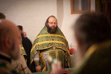 Диаконский чин возглавил протодиакон Владимир Назаркин. Апостольское чтение (чтение преподобному из Послания к Галатам) зачитал лаврский насельник иеродиакон Никон (Котов), празднующий сегодня день тезоименитства.