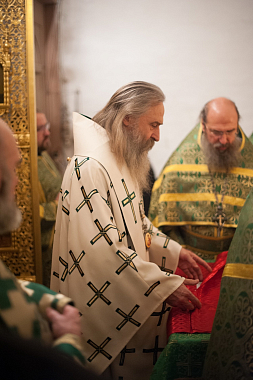 Накануне в Успенском соборе состоялось всенощное бдение, которое возглавил наместник Троице-Сергиевой лавры, председатель Синодального отдела по монастырям и монашеству архиепископ Сергиево-Посадский Феогност.