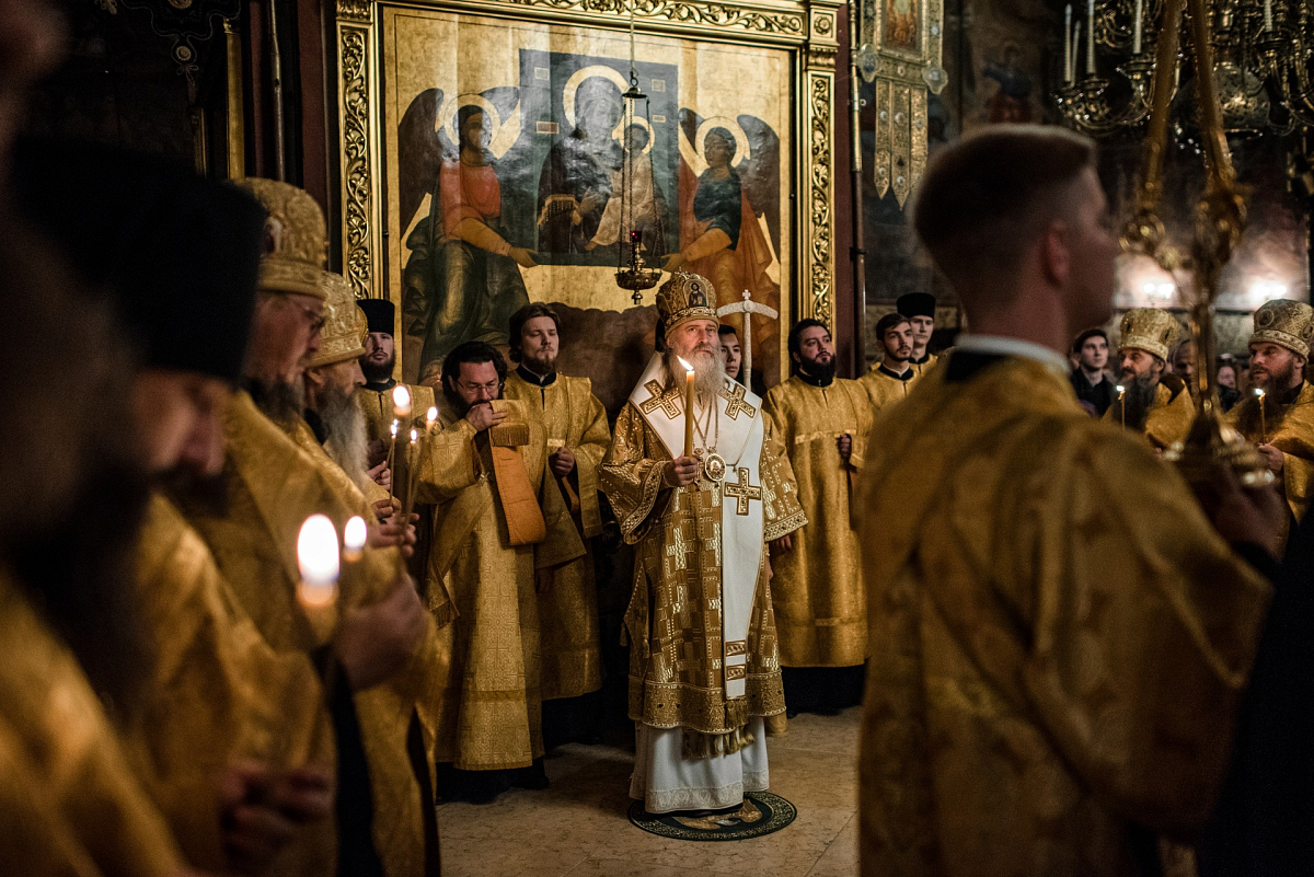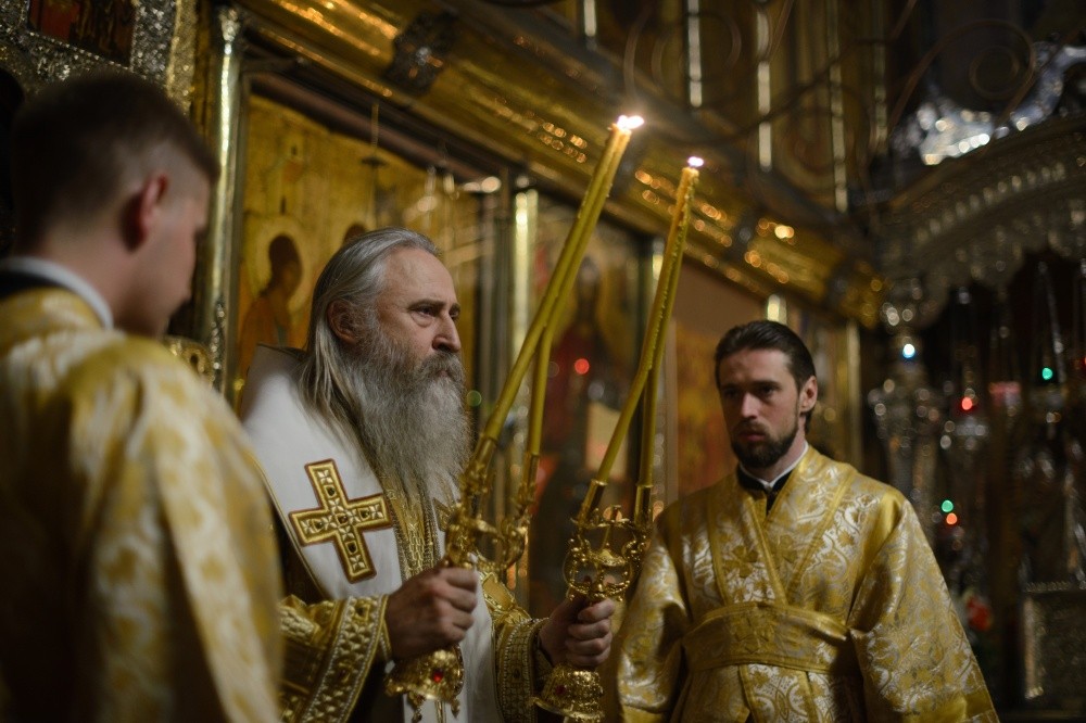 В этот день владыка Феогност совершил Божественную литургию в Троицком соборе лавры.