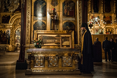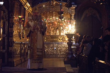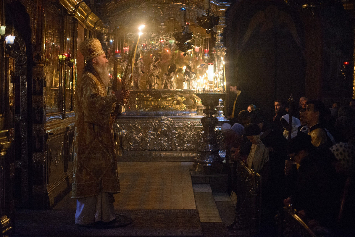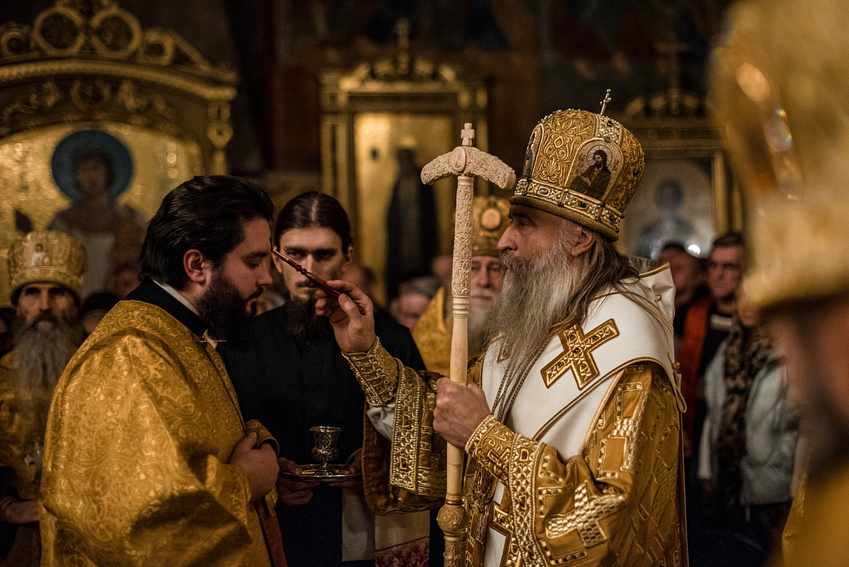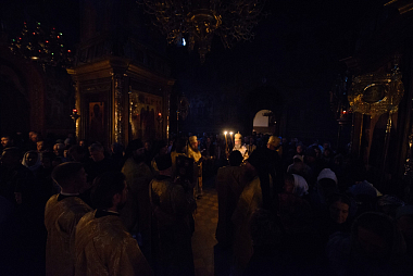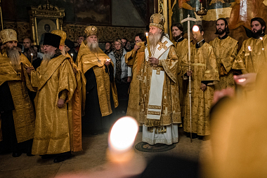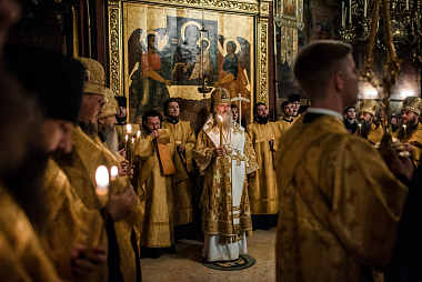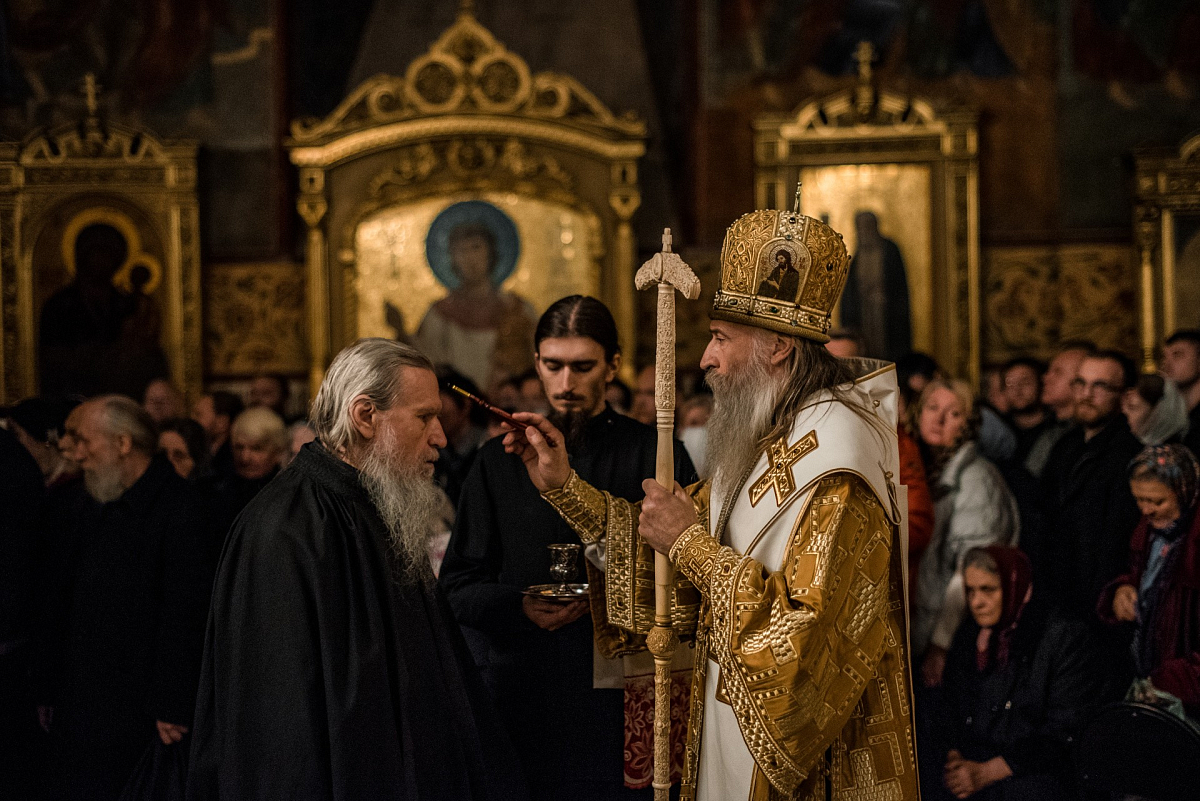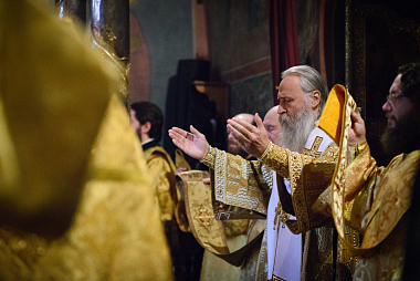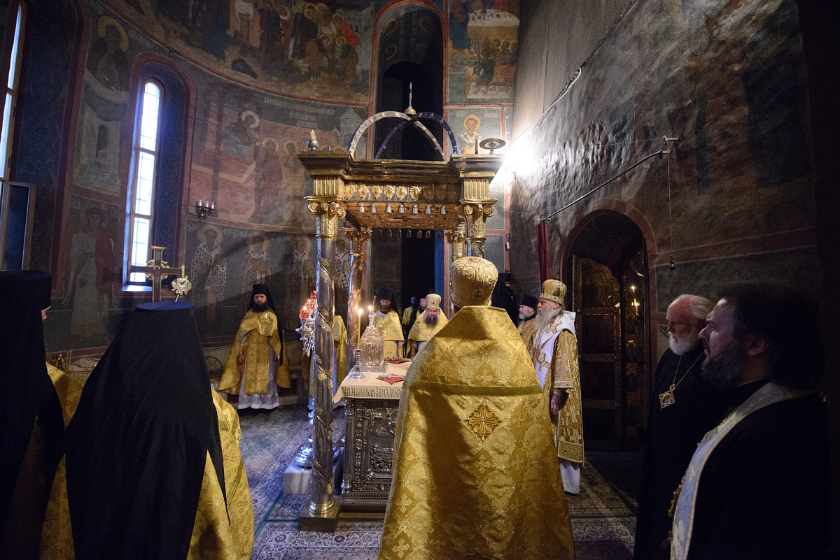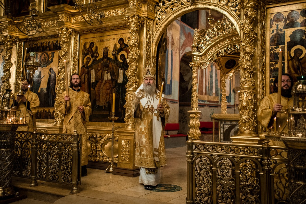 Накануне владыка Феогност возглавил всенощное бдение с полиелеем в Успенском соборе Лавры и совершил помазание у мощей святителя Иннокентия, митрополита Московского и Коломенского.