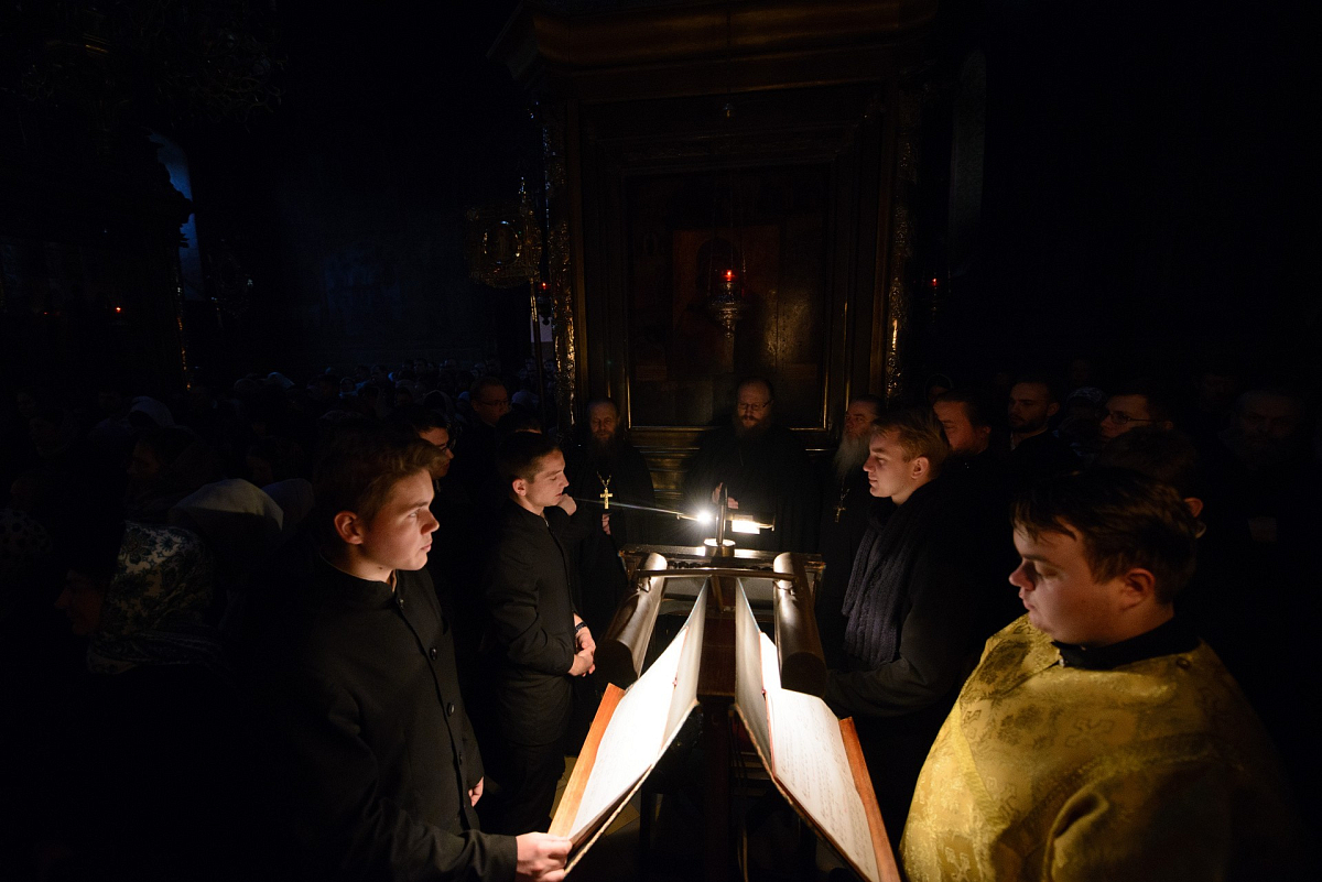 Церковные песнопения исполнил Знаменный хор Троице-Сергиевой лавры под управлением благочинного обители архимандрита Павла (Кривоногова).