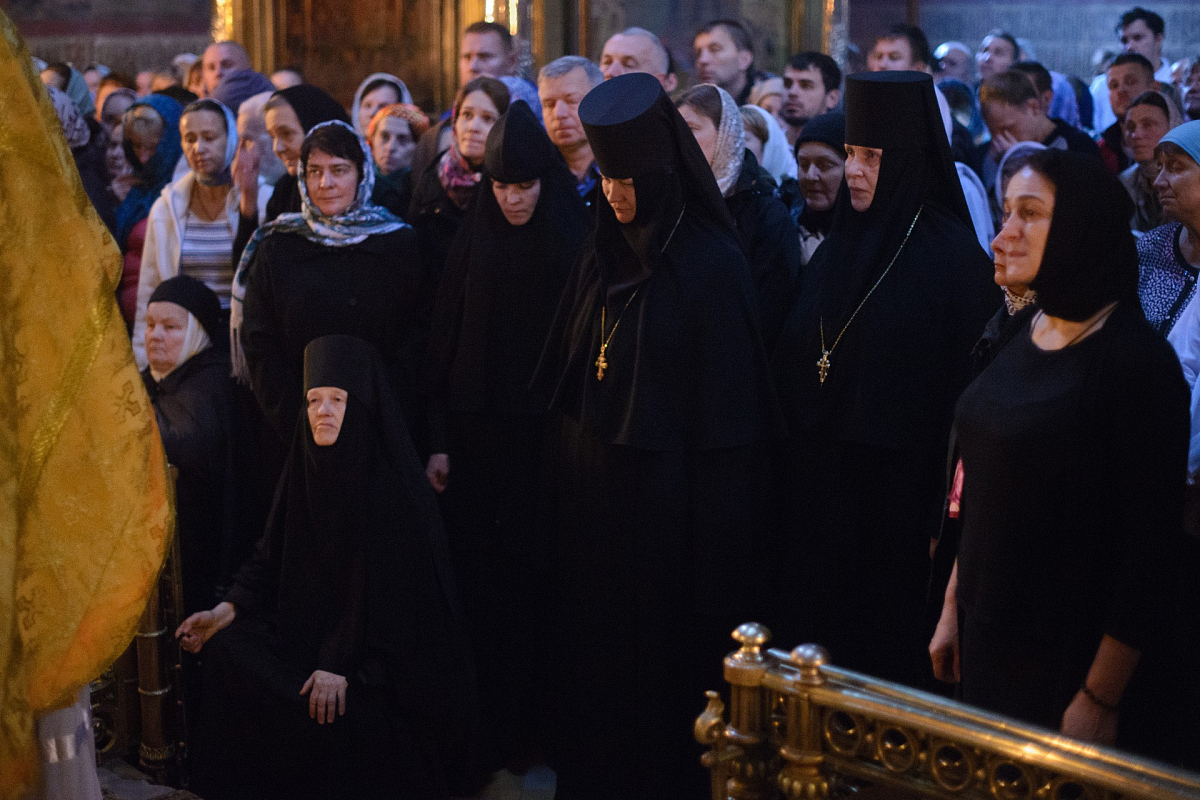 За богослужением в алтаре Троицкого собора молились митрополит Валентин (Мищук) (на покое), митрополит Архангельский и Холмогорский Даниил, ректор МДА архиепископ Верейский Амвросий, наместник Андреевского ставропигиального мужского монастыря епископ Дмитровский Феофилакт.