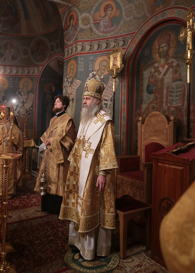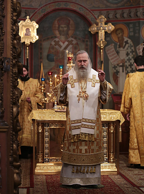 Праздничную Божественную литургию возглавил председатель Синодального отдела по монастырям и монашеству архиепископ Сергиево-Посадский Феогност.