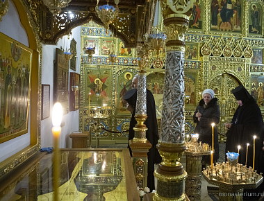 Накануне в монастыре было отслужено торжественное всенощное бдение по чину престольного праздника, начавшееся с малой вечерни и акафиста. Более пяти часов непрестанно воссылалось славословие Богу и Царице Небесной.