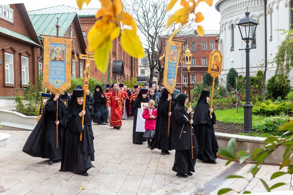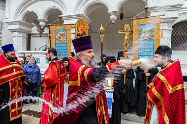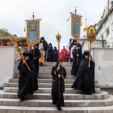 По окончании поздней Божественной литургии вокруг монастырского собора состоялся праздничный крестный ход.