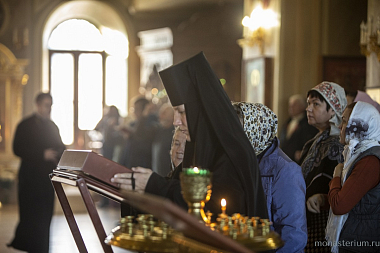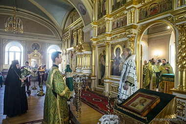 В этот день торжественное богослужение в монастыре возглавил председатель Синодального отдела по монастырям и монашеству архиепископ Сергиево-Посадский Феогност.