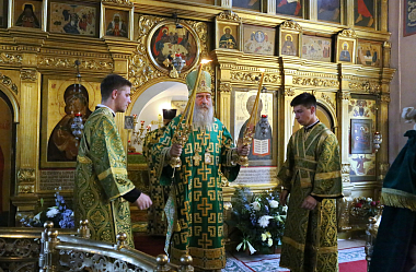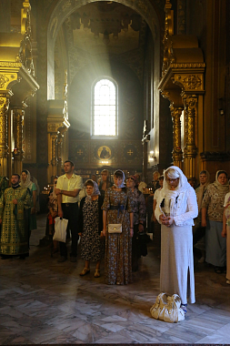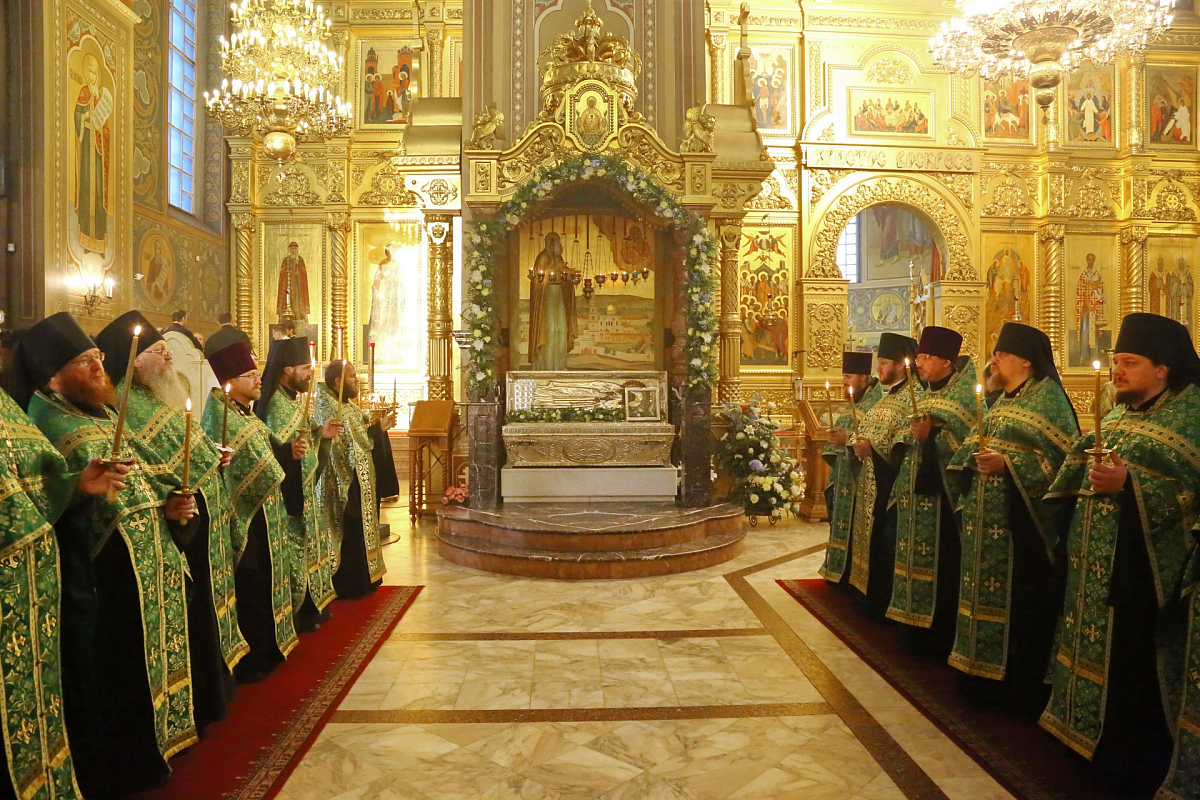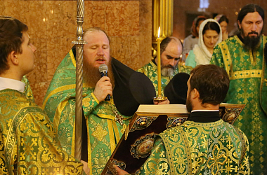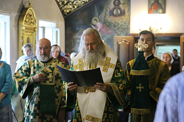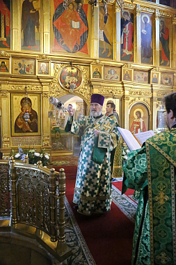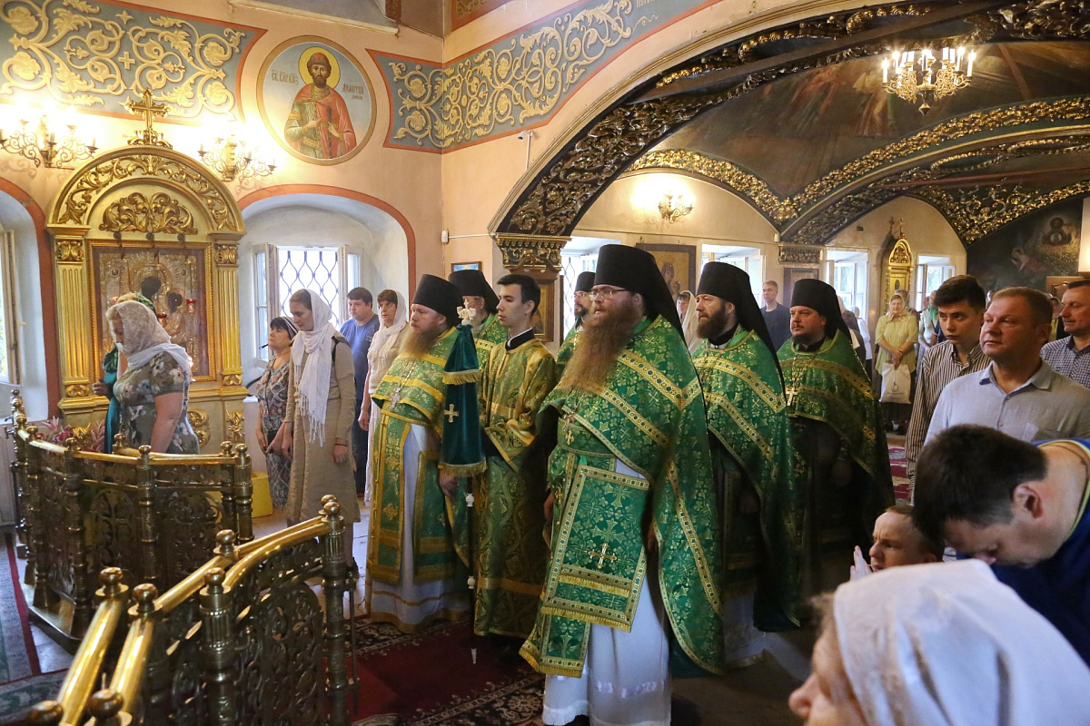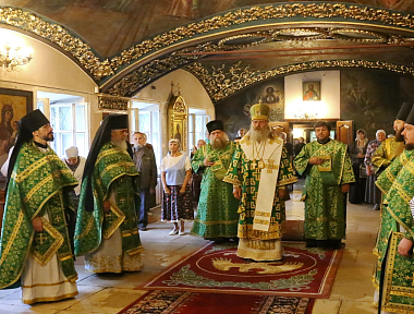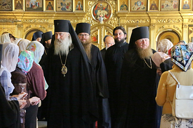 Его Высокопреосвященству сослужили: заместитель председателя Синодального отдела по монастырям и монашеству, архимандрит Стефан (Тараканов); наместник Николо-Угрешского монастыря, игумен Варфоломей (Петров); братия обители в священном сане.