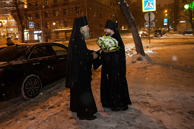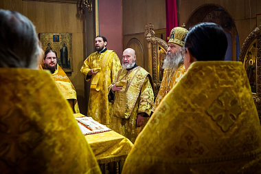 Его Высокопреосвященству сослужили и.о. начальника Московского подворья игумен Иосиф (Крюков) и клирики храма.