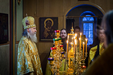 По окончании Литургии владыка Феогност произнес перед собравшимися проповедь о прп. Антонии Великом и его поучениях.
