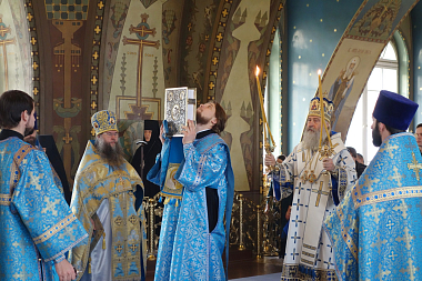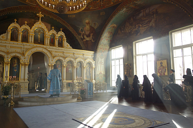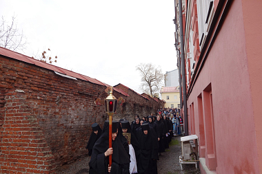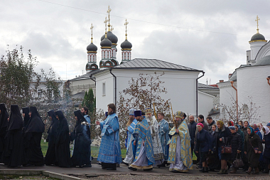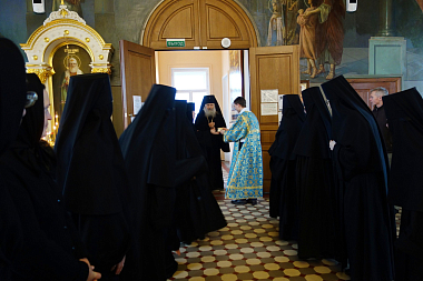 В завершение богослужения состоялся крестный ход, после чего Высокопреосвященнейший владыка передал настоятельнице монастыря игумении Викторине, сестрам и прихожанам обители поздравление и благословение Святейшего Патриарха.
