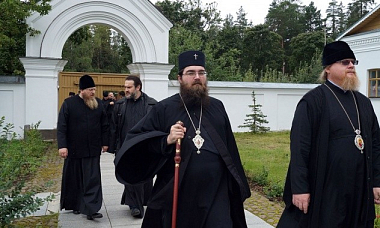 Гостей также сопровождает викарий Святейшего Патриарха Московского и всея Руси епископ Подольский Тихон.