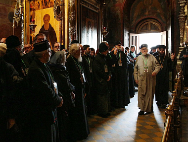 В Троице-Сергиевой лавре главу и членов делегации Архиепископии сопровождали экзарх Западной Европы, руководитель Управления Московской Патриархии по зарубежным учреждениям митрополит Корсунский и Западноевропейский Антоний, заместитель управляющего делами Московской Патриархии епископ Зеленоградский Савва, заместитель председателя Отдела внешних церковных связей Московского Патриархата протоиерей Николай Балашов.