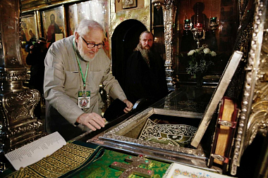 Члены делегации Архиепископии также поклонились святыням Серапионовой палаты и осмотрели достопримечательности Троице-Сергиевой лавры.